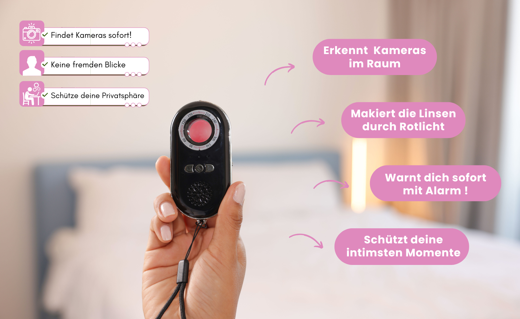 Vertraue auf modernste Technik, die dich sofort alarmiert und deine intimsten Momente schützt. Mit Spyscanner behältst du die Kontrolle über deine Privatsphäre – überall und jederzeit.